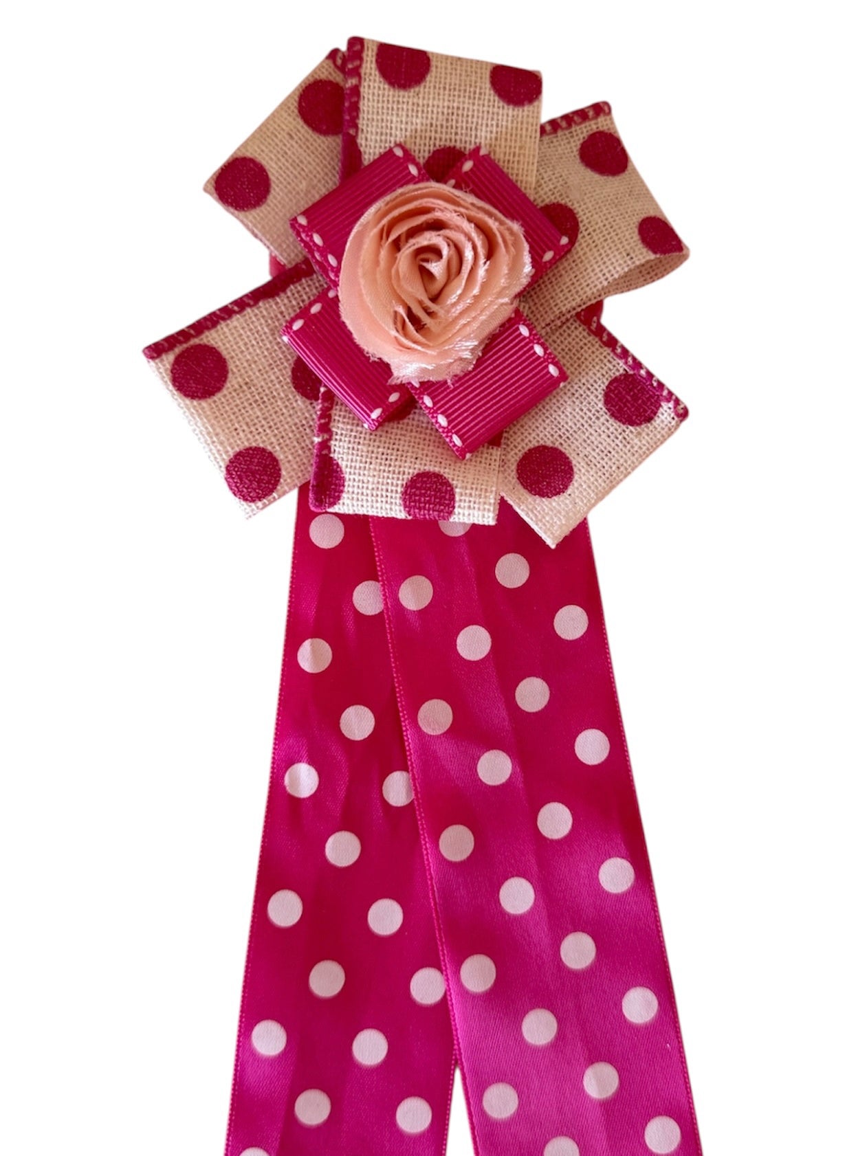 handmade rosette using vintage + new ribbons .。.:*☆ has a pin on the back so it can be used as an accessory on your clothing or a bag charm!