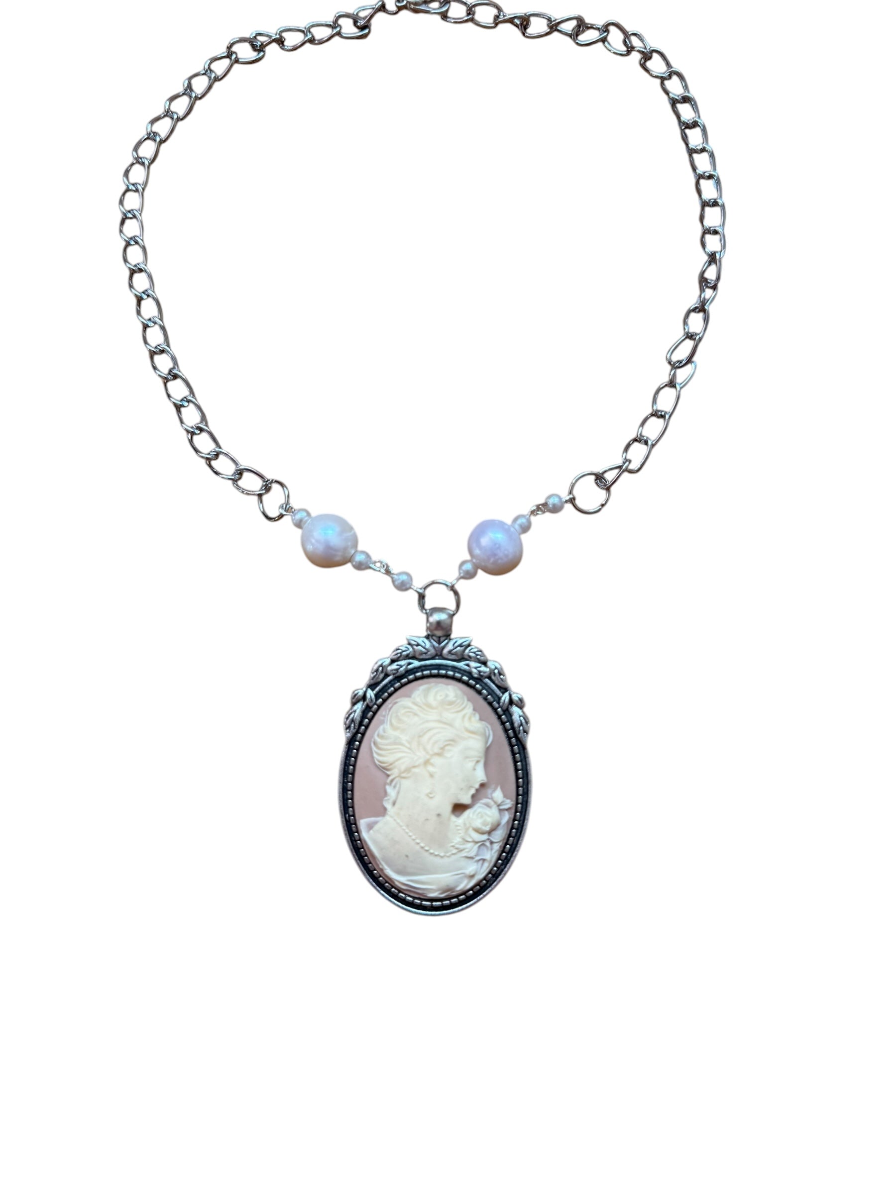 handmade necklace made with vintage pendants + freshwater pearls ⋆˚౨ৎ ⋆.˚